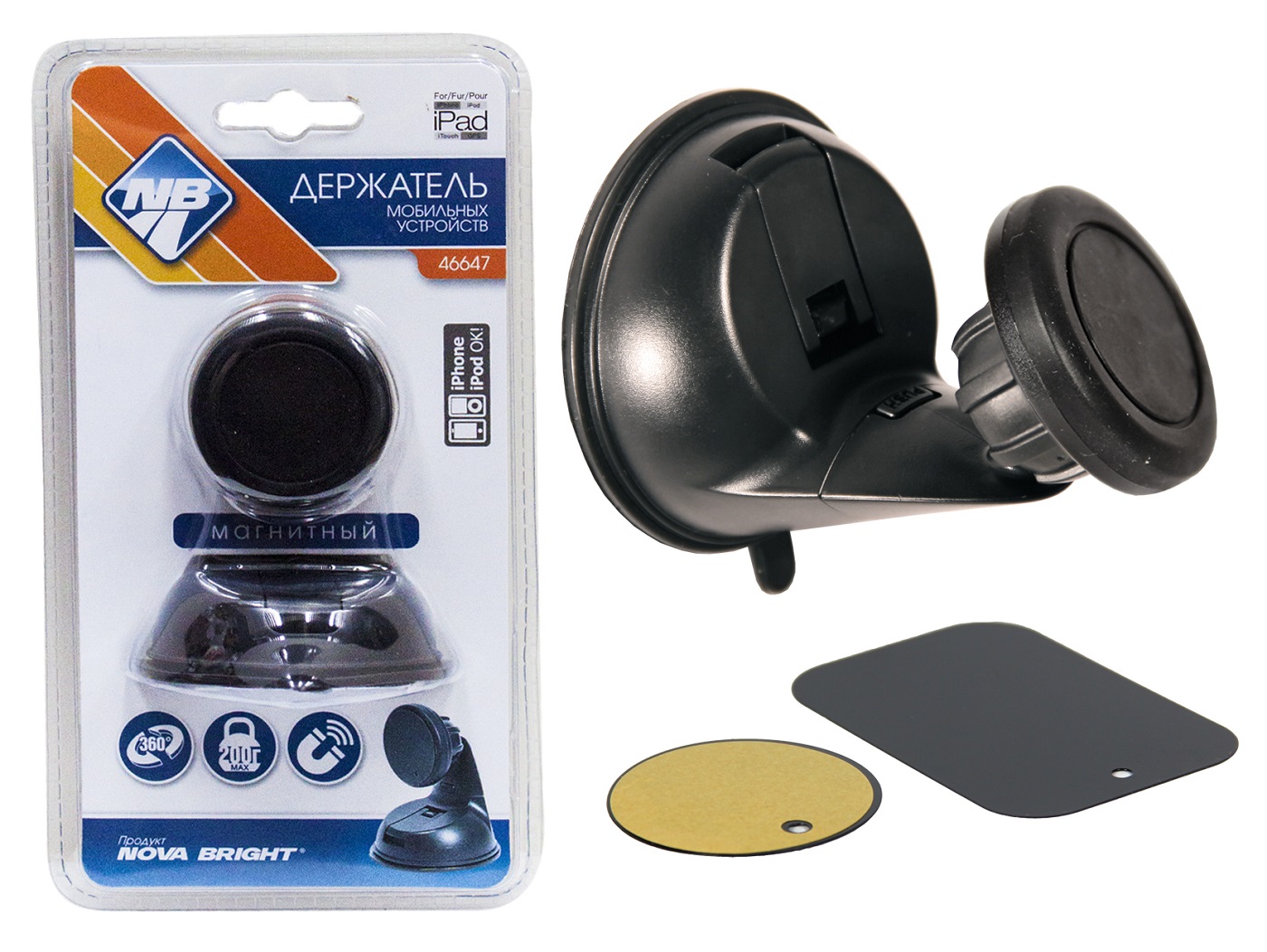 Универсальный держатель предназначен для установки мобильных устройств в салоне автомобиля. Легко крепится на лобовое стекло или панель приборов при помощи вакуумной присоски. Рекомендован для устройств весом до 200 г. Шаровое крепление верхней части держателя позволяют закрепить мобильное устройство под удобным для использования углом обзора.Держатель для телефона NOVA BRIGHT магнитный 46647 [170213479], как и прочие товары из категории Автомобильные аксессуары , представлены в каталоге интернет-магазина Бригадир в группе Автомобильные товары по самым выгодным ценам. У нас вы можете получить обзор и характеристики самостоятельно, либо получить консультацию специалиста по телефону. Уточнить наличие и купить Держатель для телефона NOVA BRIGHT магнитный 46647 [170213479] можно с оперативной доставкой на адрес в удобное для вас время.