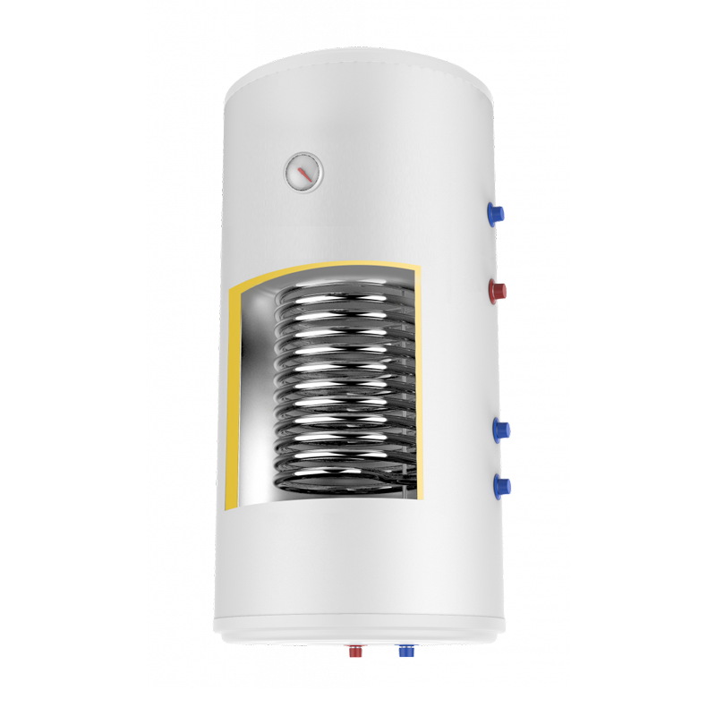 Бойлер косвенного нагрева — это утепленная накопительная емкость из нержавеющей стали, внутри которой установлен нагревательный элемент, работающий от внешнего теплоносителя. Исполнение — змеевик в баке, нагрев воды осуществляется с помощью ветки отопительного контура, также возможна установка электрического нагревательного элемента.|