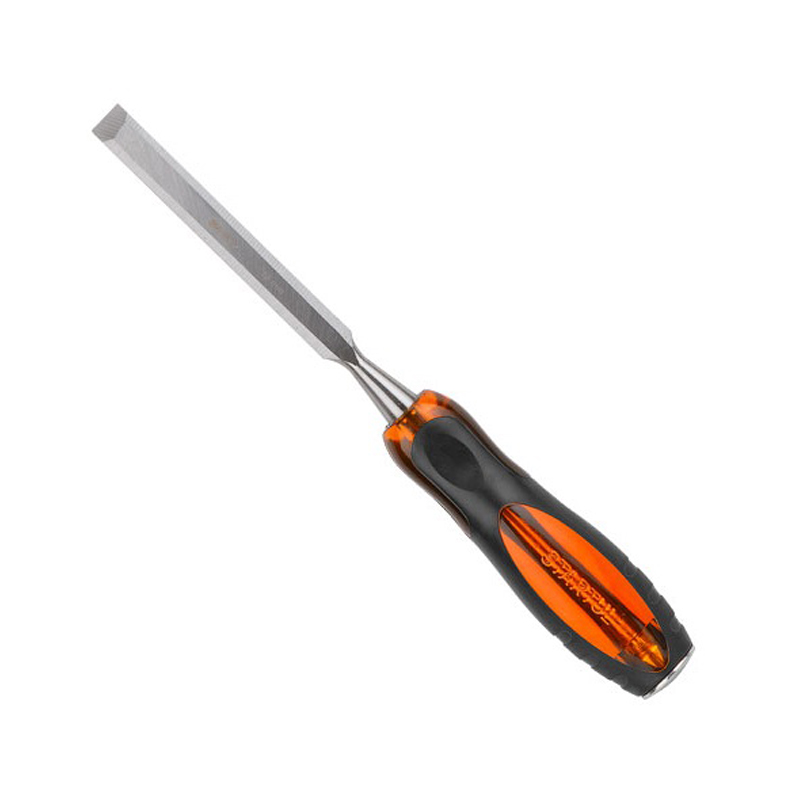 Стамеска предназначена для проведения столярных и плотницких работ, таких как выдалбливание пазов и гнезд, снятие фасок и шлицов. Двухкомпонентная обрезиенная ручка делает работу инструментом комфортным. Имеет металлический затыльник для ударных работ.|