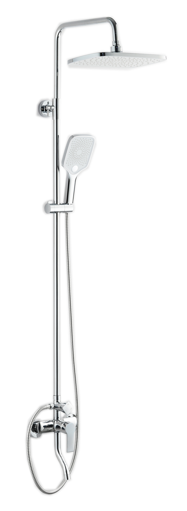 Душевая система VODA со смесителем. Стойка телескопическая, регулируемая по высоте. Идеально подойдет для ванной комнаты, выполненной в современном стиле.В комплект входит: