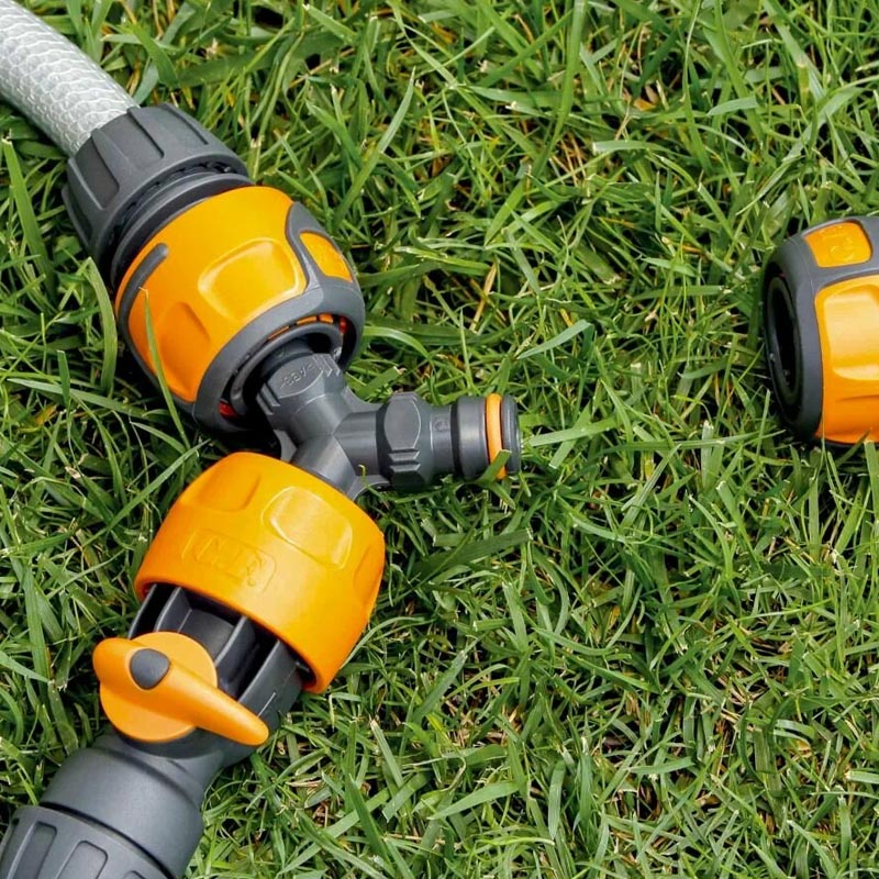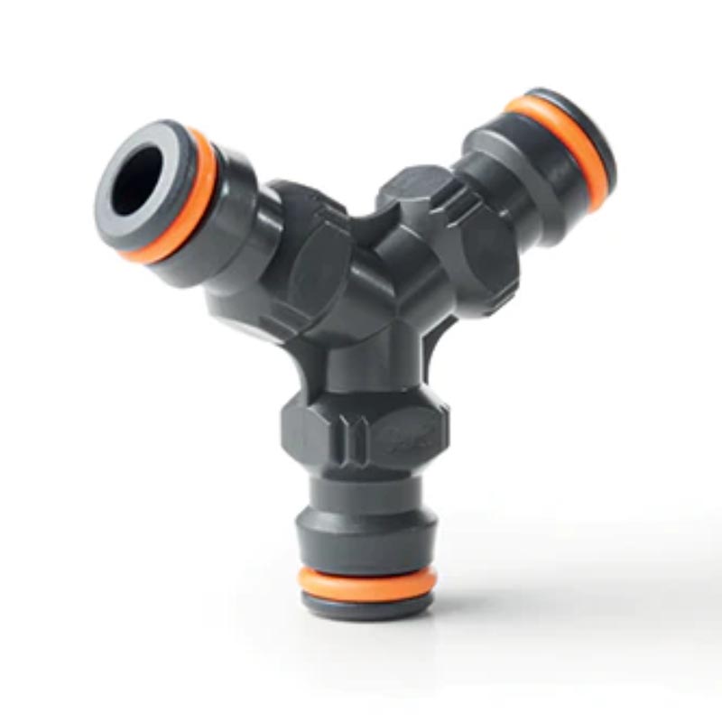 Тройник G.F используется для соединения трех шлангопроводов, оснащенных защелкивающимися соединителями.|