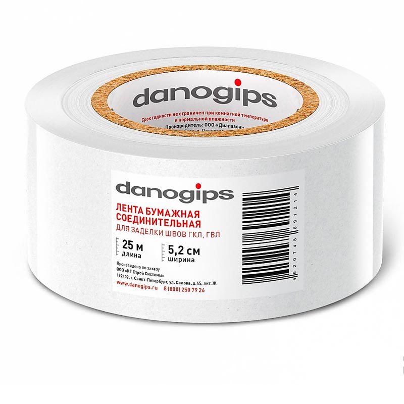 Бумажная соединительная лента для заделки швов DANOGIPS – прочная волокнистая лента, предназначенна для применения со шпатлевкой для усиления швов и внутренних углов ГКЛ, ГВЛ.|