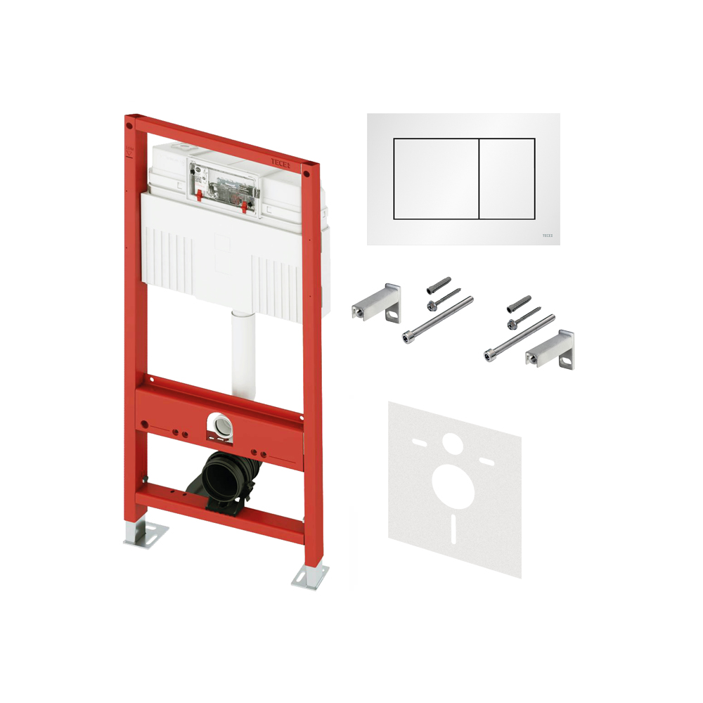 Исталляция для унитаза TECE используется при его монтаже в металлических или деревянных каркасных стенах, перед стеной или в качестве углового модуля. Застенный модуль TECE Base 3.0 полностью готов к монтажу и установке подвесного унитаза. Модуль комплектуется бачком для воды объемом 10 литров. Конструкция сливного клапана позволяет регулировать большой объем слива - от 4,5 до 9 литров. Объем малого смыва составляет 3 литра. Материал бачка и технология его изготовления обеспечивает ударопрочность и стойкость к низким температурам. Доступ к содержимому бачка производится через отверстие для панели смыва, при этом все элементы внутренней конструкции легко извлекаются и обслуживаются. Использование подвесного унитаза вместо стандартного напольного экономит пространство в туалетной комнате и значительно упрощает процесс уборки помещения. Модуль TECE Base 3.0 выдерживает нагрузку до 400 кг, что обусловлено конструкцией, надежностью используемых материалов и постоянным контролем качества.|