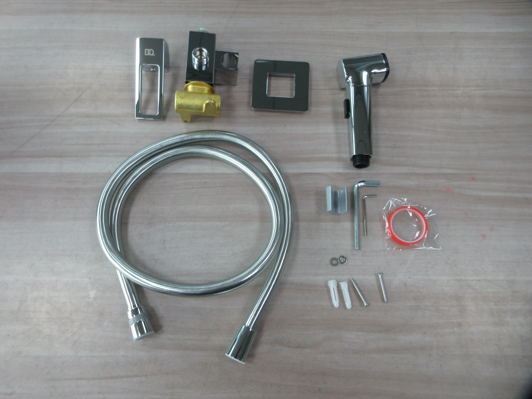 Гигиенический комплект со смесителем DQ скрытого монтажа. Изготовлен в современном дизайне, что позволяет установить изделие в ванной комнате любой стилистической направленности. Утонченные линии и продуманный до мелочей дизайн станет роскошным украшением интерьера. Корпус смесителя изготовлен из качественного латунного сплава.В комплект входит: