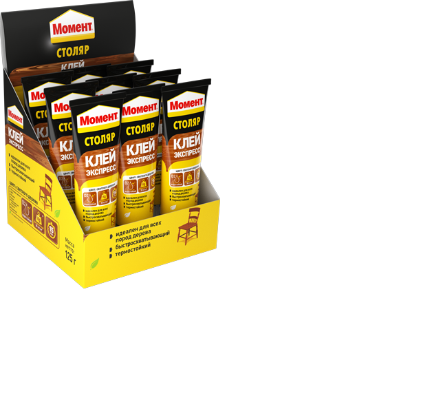 Клей МОМЕНТ Столяр быстросхватывающий термостойкий высокопрочный клей для всех пород дерева, ДСП, фанеры, шпона, ламината, картона, фурнитуры, ткани, кожи, некоторых пластиков. МОМЕНТ Столяр рекомендуется применять при сборке и ремонте мебели. Склеиваемые поверхности должны быть чистыми, сухими и плотно прилегать друг к другу. Некоторые виды дерева (например, тиковое дерево) рекомендуется обезжирить любым имеющимся под рукой растворителем, например, ацетоном.|