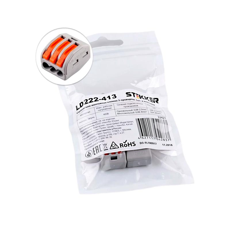 Клемма соединительная STEKKER 32421 [170306813], как и прочие товары из категории Клеммные зажимы и наконечники , представлены в каталоге интернет-магазина Бригадир в группе Изделия для монтажа и прокладки кабеля по самым выгодным ценам. У нас вы можете получить обзор и характеристики самостоятельно, либо получить консультацию специалиста по телефону. Уточнить наличие и купить Клемма соединительная STEKKER 32421 [170306813] можно с оперативной доставкой на адрес в удобное для вас время.