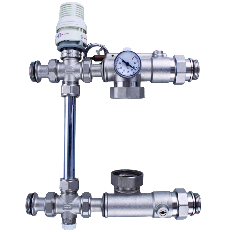 Насосно-смесительный узел ALTSTREAM Sm15231 предназначен для поддержки постоянной температуры в системах низкотемпературного отопления (теплые полы). Температура поддерживается на заданном уровне с помощью термостатической головки. Без насоса.|