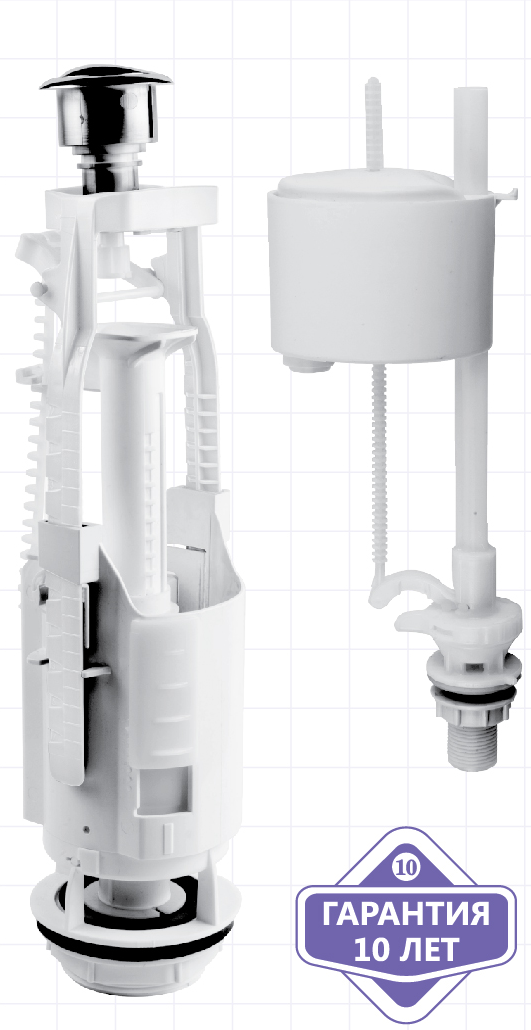 Арматура для унитаза – это его главный рабочий механизм, осуществляющий смыв и набор воды в бачок. Арматура состоит из двух частей: наливного клапана и сливного клапана, которые независимы друг от друга и могут заменяться по отдельности.|