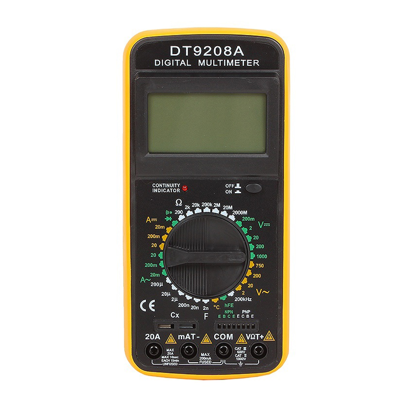 Мультиметр РЕСАНТА DT 9208 A предназначен для измерения тока, напряжения, сопротивления, параметров диодов и транзисторов, а также частоты и температуры. Прибор многофункционален, портативен, питается от химических источников, удобен при ремонте электрооборудования автомобиля, лабораторных измерений и т. д.|