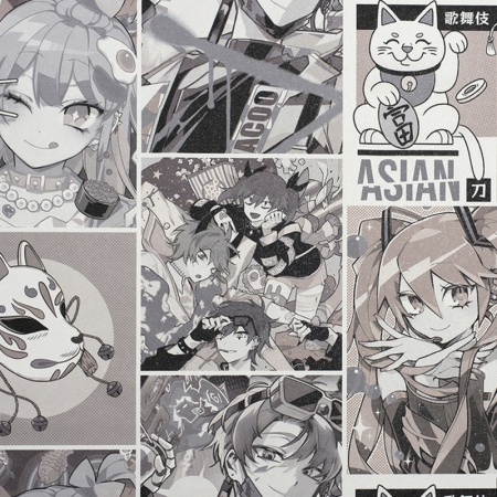 Anime - коллекция обоев, которая точно никого не оставит равнодушным. Стилизованную под остро-популярные японские комиксы, рассказывающую целую историю героев, серию оценят не только подростки, но и люди с уникальным вкусом. Стильный монохромный мотив поддержан фоном в более спокойной гамме.|