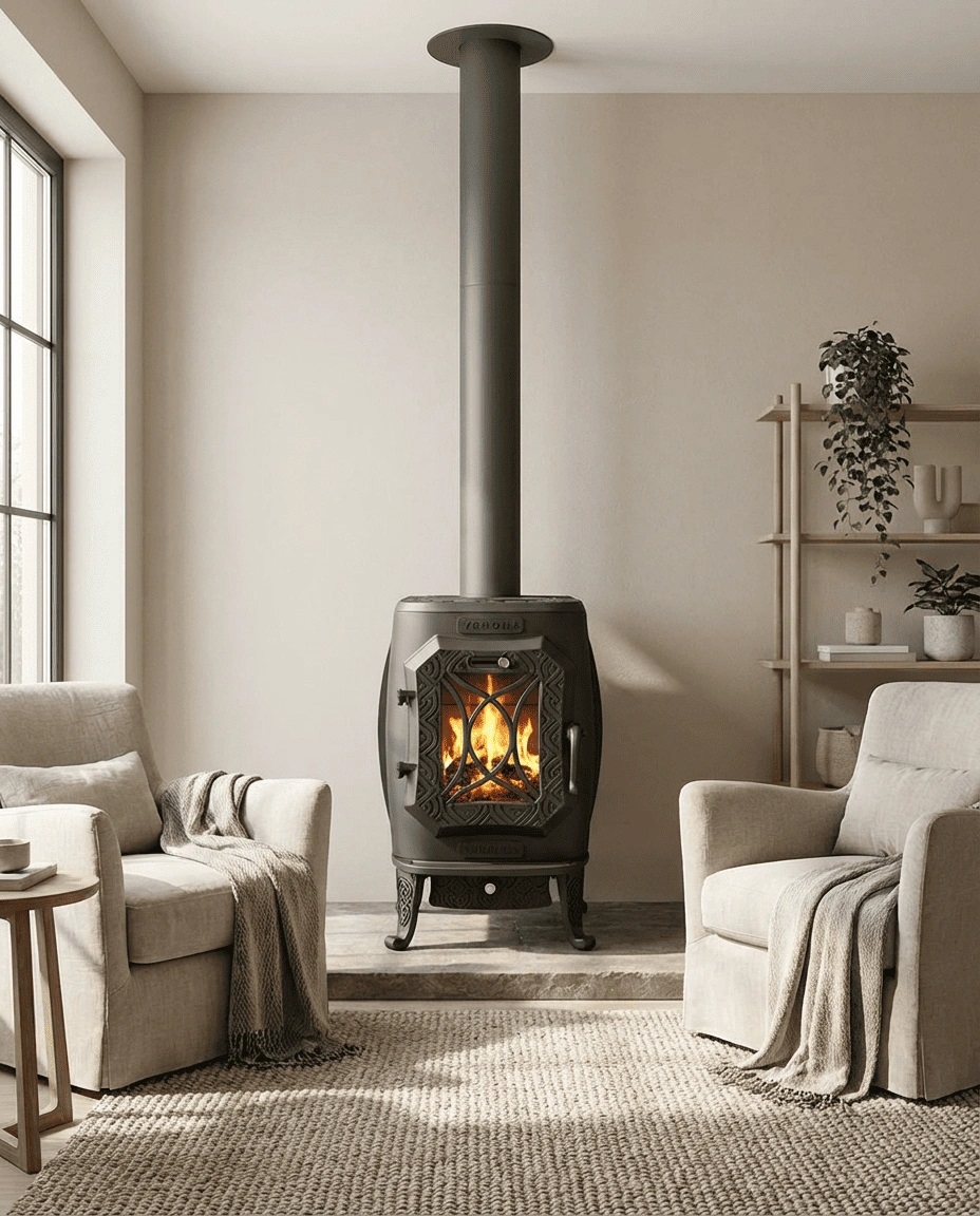 Интерьерная чугунная печь Verona - это мощная и компактная отопительная печь для дома, дачи и загородного коттеджа, рассчитанная на обогрев помещений общим объёмом до 200 м³. Печь отлично подходит для установки в жилых комнатах, гостиной, мастерской или банном комплексе (в зоне отдыха). В качестве топлива используются: дрова длиной до 54 см, древесные топливные брикеты.|