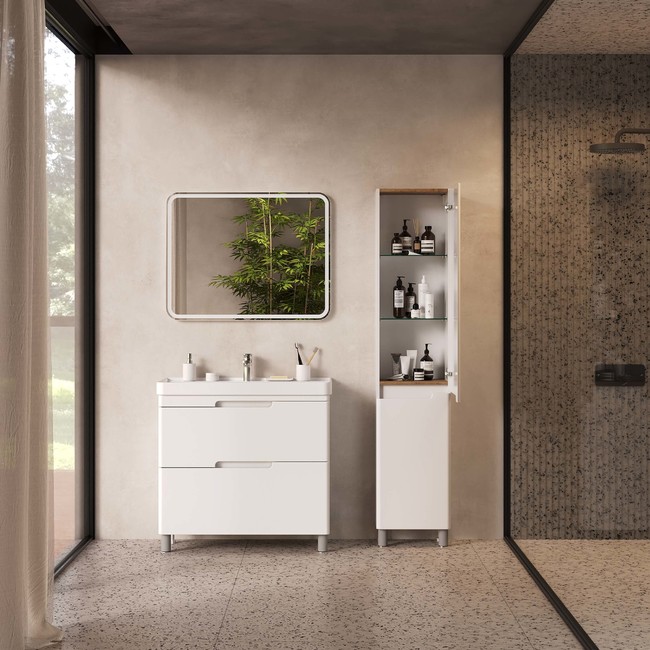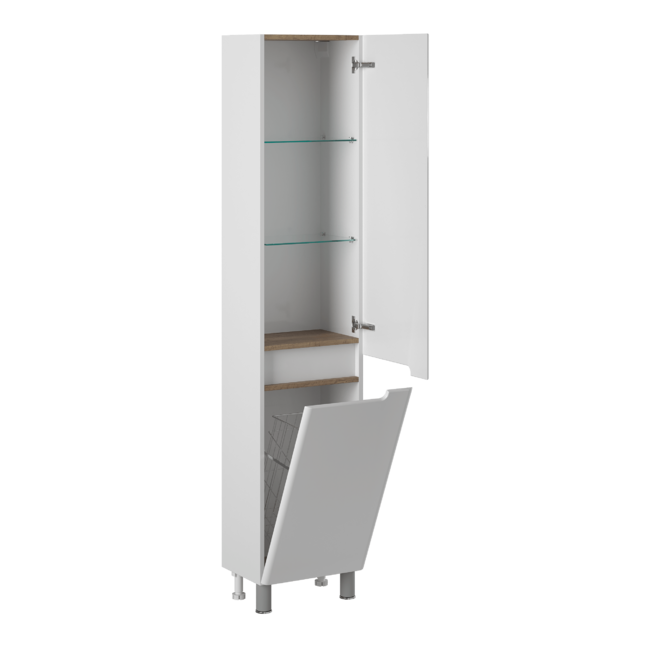 Корпус пенала изготовлен из влагостойкого МДФ. Фасады выполнены из ЛДСП и покрыты итальянской эмалью (2 слоя эмали + 4 слоя грунта). Комплектуется фурнитурой Hettich с системой бесфурнитурного открывания push-to-open. Внутренняя отделка текстурой дуб Веллингтон Табак.|