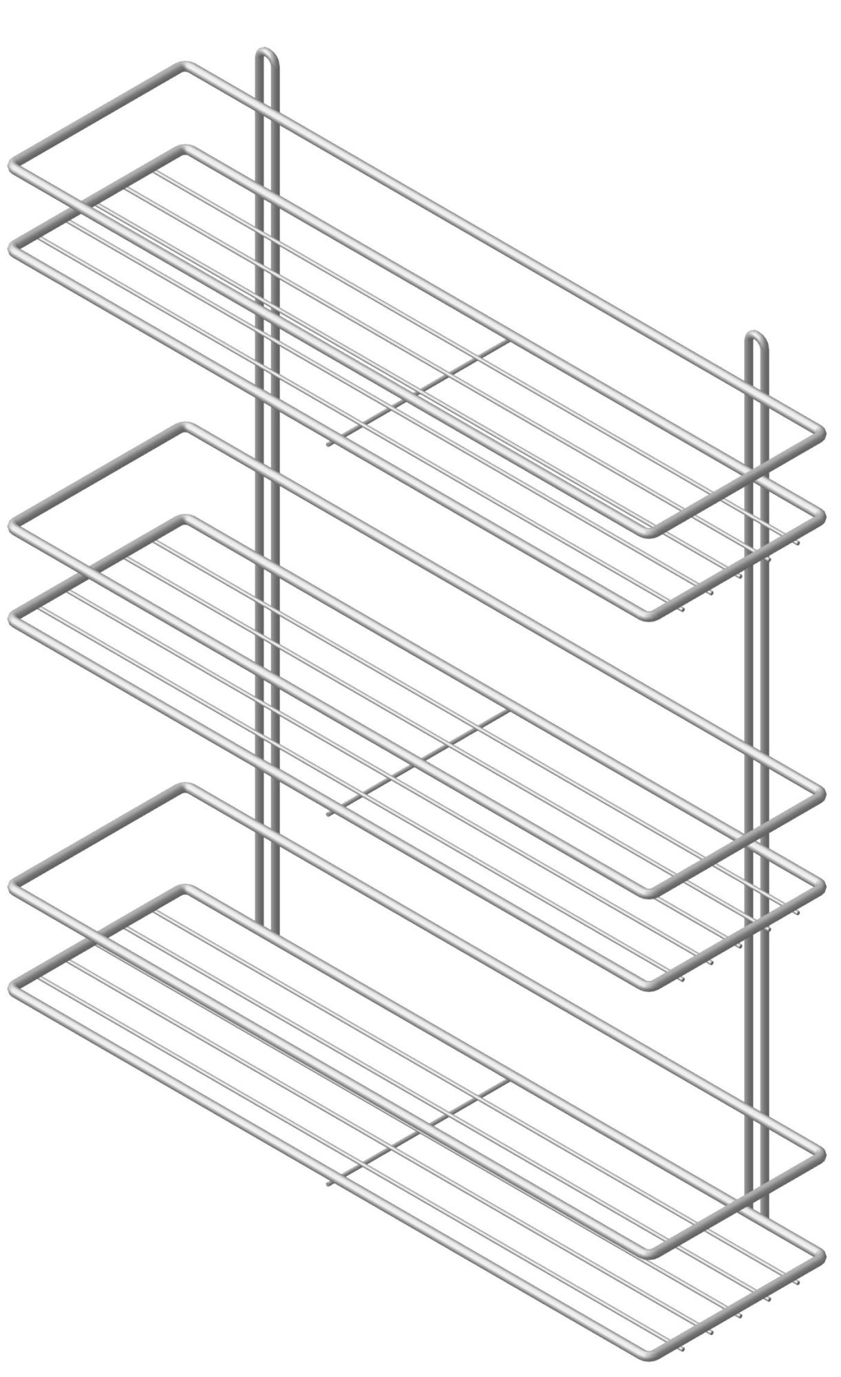 Трехярусная прямая полка PROFFERO подходит для ванных комнат: она не занимает много места, но позволяет удобно расставить все необходимые банные принадлежности. Решетчатая конструкция предотвращает скапливание воды, а боковые стенки оптимальны по высоте для удобного хранения аксессуаров.|
