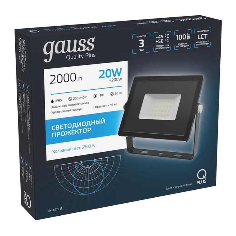 Прожектор LED GAUSS Qplus 20W черный 613511320 можно подобрать и купить в нашем магазине Бригадир по низкой цене.