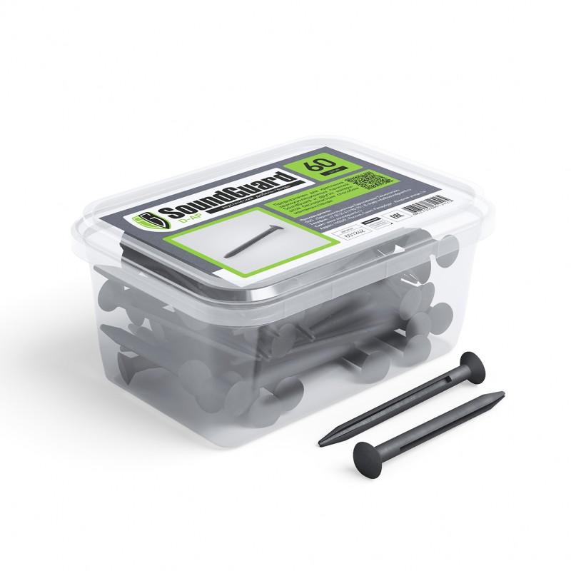 Дюбель-гвоздь акустический SOUNDGUARD предназначен для крепления звукоизоляционных панелей бескаркасным способом к стенам. За счет высокого коэффициента механических потерь через данные крепления вибрация и структурный шум практически не распространяется.|