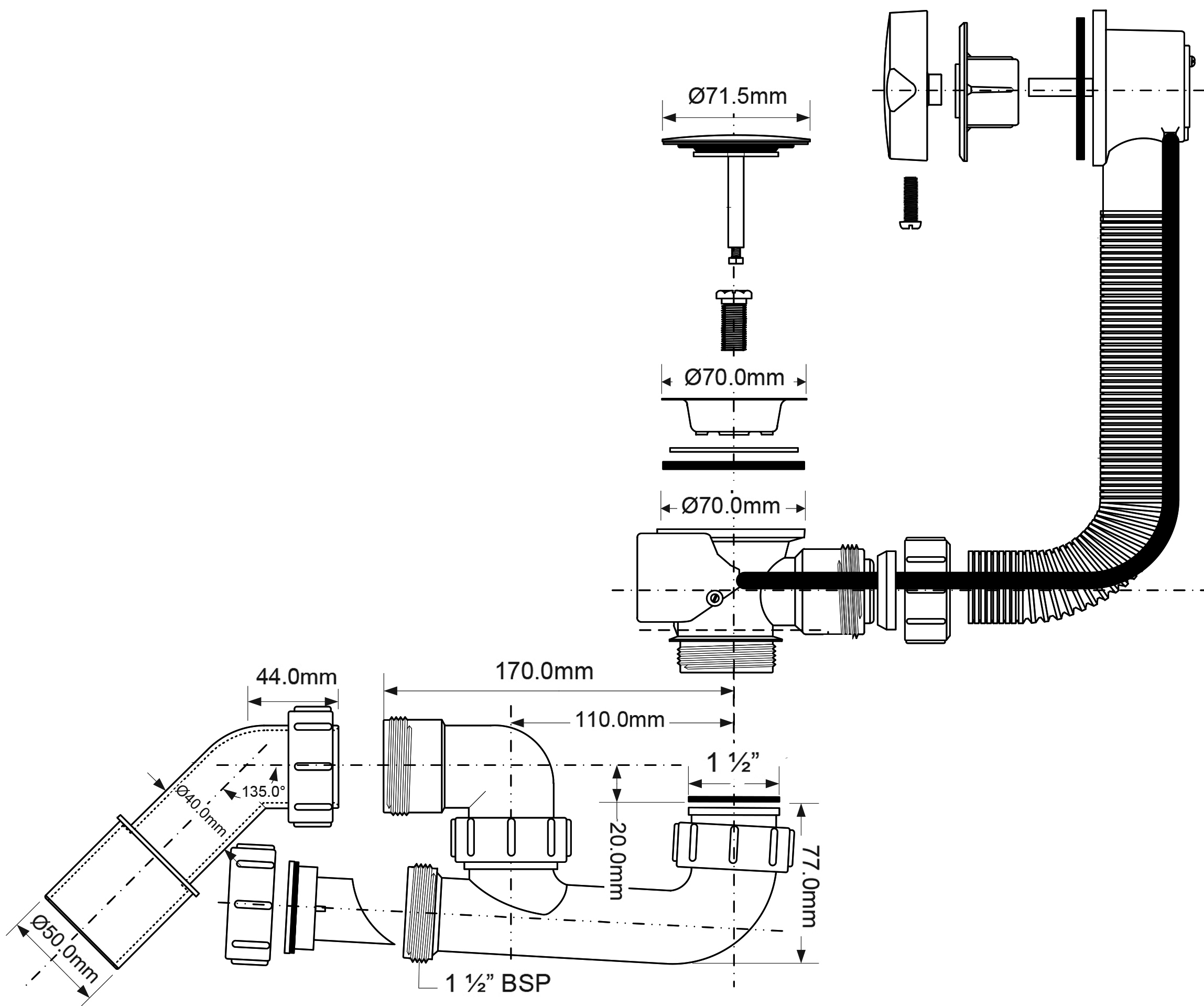 Сифон для ванны MCALPINE MRB2CBNS-PB можно подобрать и купить в нашем магазине Бригадир по низкой цене.