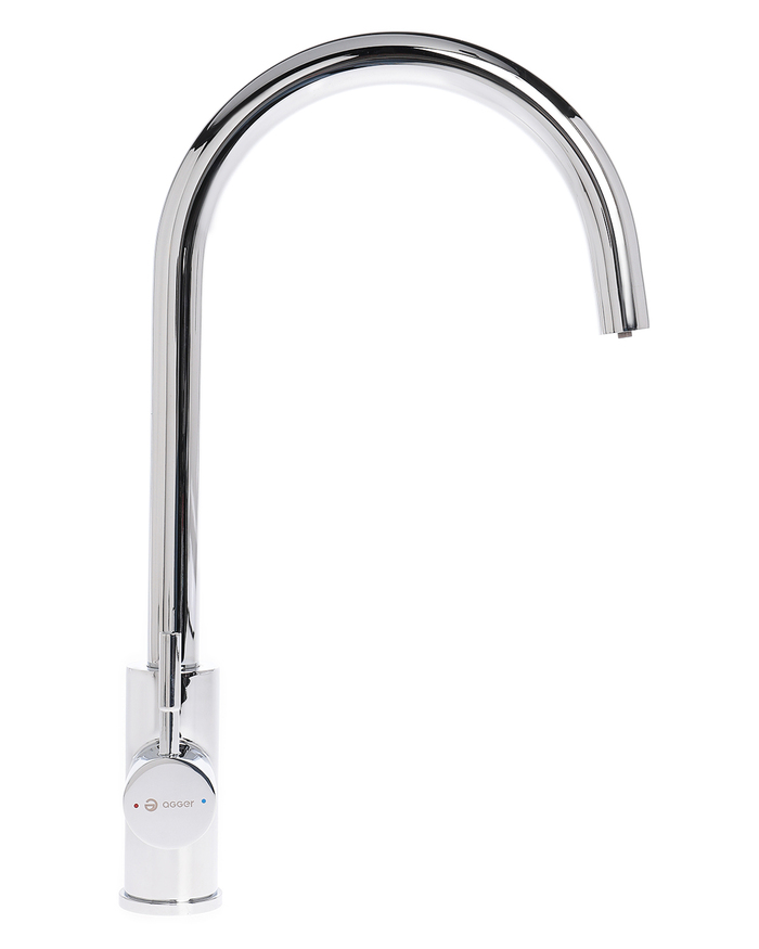 Смеситель AGGER функционален, удобен в использовании. Лаконичный дизайн, плавные изгибы и отсутствие лишних деталей: смеситель дополнит кухонный интерьер в любом стиле.|