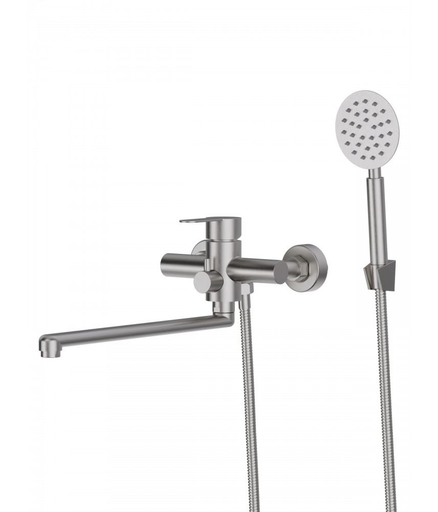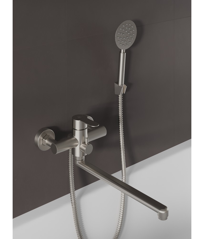 Однозахватный смеситель для ванны/душа с универсальным изливом и душевым набором AGGER Zest гармонично дополнит и украсит интерьер ванной комнаты. Корпус выполнен из нержавеющей стали, не подверженной коррозии от длительного контакта с водой. Фирменный картридж делает легким управление напором и температурой воды, а керамический поворотный дивертор переключит ее направление с излива на душ даже при низком давлении. Износостойкое покрытие в цвете матовый никель нанесено по технологии вакуумного напыления (PVD), на нем незаметны разводы от высохшей воды и отпечатки пальцев. Аэратор экономит воду и, обогащая струю воздухом, делает её мягкой и без брызг.|
