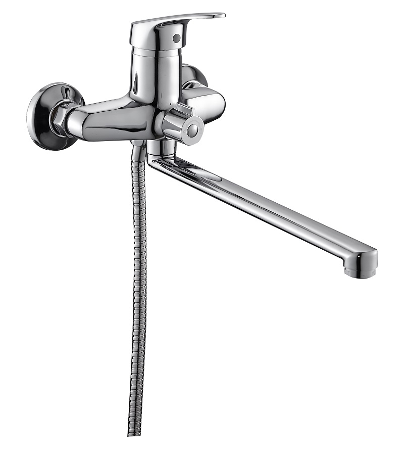 Смеситель для ванны реализован в современном стиле. Данное изделие удовлетворит потребности самого требовательного покупателя и легко впишется в интерьер вашей ванной комнаты.|