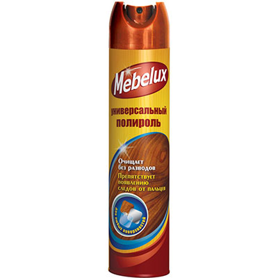 Полироль для мебели MEBELUX бережно ухаживает за вашей мебелью, удаляет следы от пальцев, защищает и придает блеск. Устраняет мелкие частицы пыли, которые являются аллергенами Обладает антибактериальным эффектом. Применяйте MEBELUX с антибактериальным эффектом каждый раз когда делаете уборку, и вы надолго избавитесь от пыли и аллергенов. Подходит для ухода за пластиковыми, деревянными, металлическими, стеклянными, мраморными и керамическими поверхностями.|