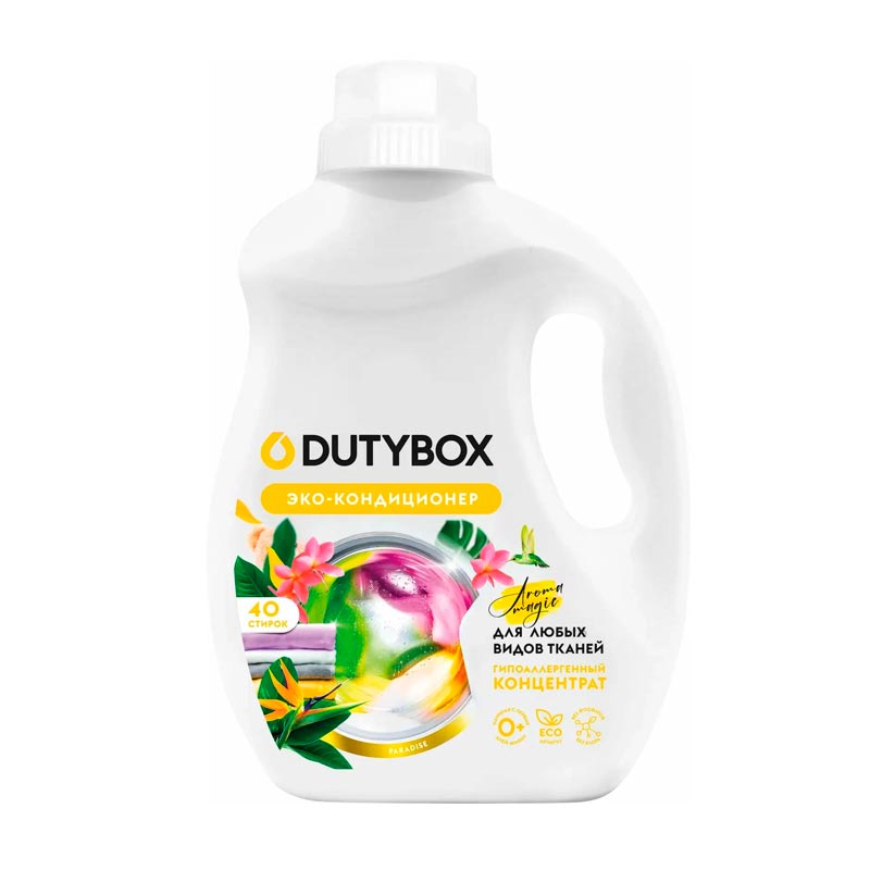DUTYBOX Эко-кондиционер д/белья Paradise 1л [170364036], как и прочие товары из категории Средства для стирки , представлены в каталоге интернет-магазина Бригадир в группе Бытовая химия по самым выгодным ценам. У нас вы можете получить обзор и характеристики самостоятельно, либо получить консультацию специалиста по телефону. Уточнить наличие и купить DUTYBOX Эко-кондиционер д/белья Paradise 1л [170364036] можно с оперативной доставкой на адрес в удобное для вас время.