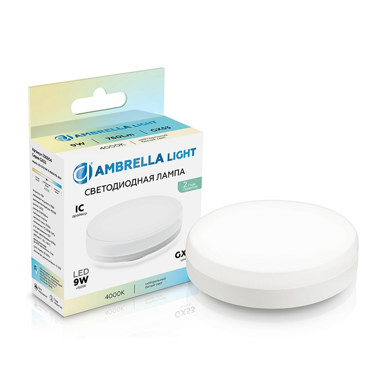 Лампа LED AMBRELLA 9W/GX53/4000К таблетка 530904 можно подобрать и купить в нашем магазине Бригадир по низкой цене.