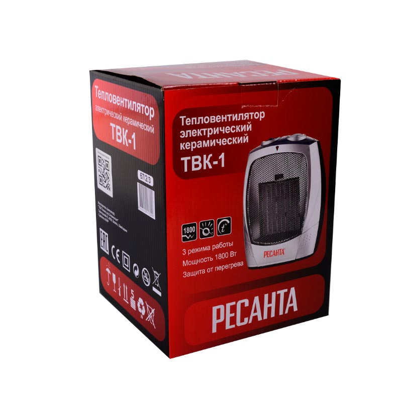 Тепловентилятор РЕСАНТА ТВК-1 используется для вентиляции и обогрева помещения. Тепловентилятор имеет 2 ступени регулировки мощности нагрева - 900/1800 Вт и режим вентиляции. Прибор оснащен керамическим нагревательным элементом. В каждом устройстве подобного типа имеется обыкновенный вентилятор, который перемещает холодный воздух, подгоняя его к нагревательному элементу. Подогретые воздушные массы устремляются в комнату, благодаря этому помещение эффективно нагревается. Тепловентилятор имеет защиту от перегрева. В случае достижения критического уровня температуры внутри конструкции или уменьшения потока воздуха, поступающего к нагревательному элементу, электроприбор может выключиться. Во избежание такой проблемы устройство следует регулярно очищать от пыли и других загрязнений.Преимущества: