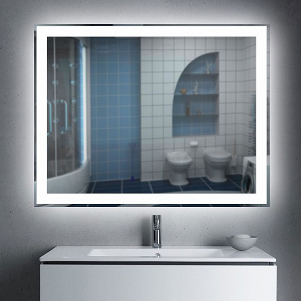 Зеркало CAIMAN c светодиодной круговой подсветкой (холодный свет) и дополнительной подсветкой короба, электрические части защищены от пыли и влаги. Зеркало выполнено в современном стиле и подойдет практически для любого интерьера не только в ванной комнате. Сенсорный выключатель на касание.|
