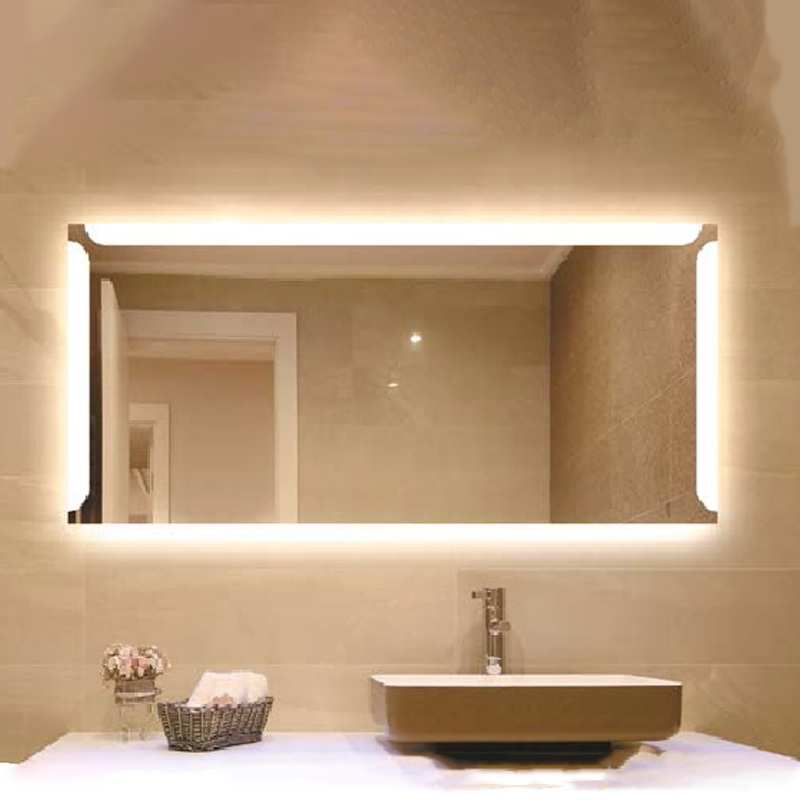 Зеркало с прямыми углами, светодиодной подсветкой (холодный свет) и дополнительной подсветкой короба, устойчиво к влаге, электрические части также защищены от пыли и влаги, а края зеркал обработаны специальной резиной, что увеличивает срок эксплуатации.|