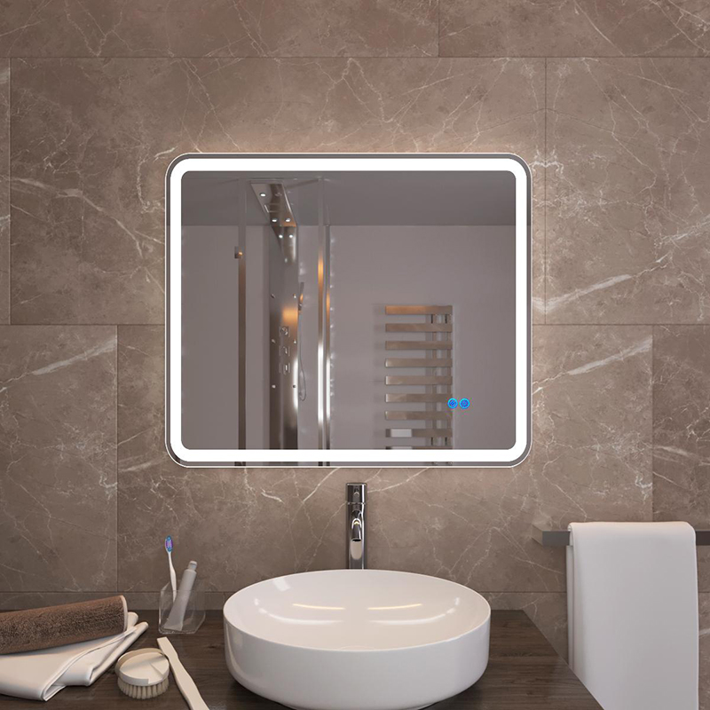 Зеркало Милан со скругленными углами и Led-подсветкой холодный свет обладает литым коробом, подогревом и двойным сенсорным выключателем на касание с функцией диммирования, плавным пуском и таймером отключения подогрева.|