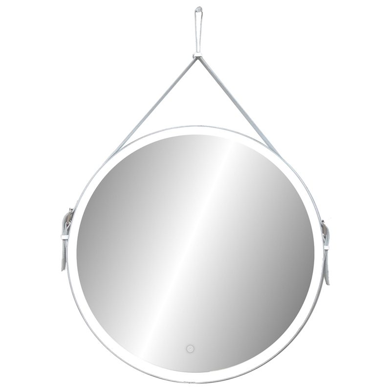 Зеркало КОНТИНЕНТ с Led подсветкой, сенсорным выключателем и ремнем из натуральной кожи белого цвета подойдет для использования не только в ванной комнате.|